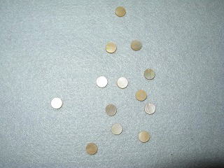 6ミリ径 ゴールドパール貝インレイ 10個セットです。写真では、反射した時の色合いが見ずらいのですが、アバロンほど派手さが無く、プラスティックに比べると光が全く違います。レスポール等のポジションマークと違って、割と簡単に埋め込みできます。まず小型の電動グラインダー等で付いているポジションを外し、穴部分に残っている接着剤を取り除いてください。エポキシ等の接着剤にエボニーやローズの粉を混ぜて、接着に使用します。仕上げは、ペーパーで#800,1000,2000の順に焦らず。小さなモノですが、全く違うギターに見えます。 |
