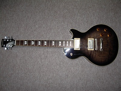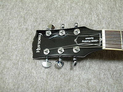 me. This is a brand which a Japanese music-shop, Shimamura, distributing. You could see their WEB site to see more History guitars. Mostly, their guitars are high-End type. Wood material is very beautiful and really good craftsman ship. Fujigen is making this guitar with their patented Circle Fretting System. As you may know, the tuning of guitar is absolutely not correct due to the circle of Neck width and strings size and etc... Fujigen CFS is fretted curved on Finger board. It is not really visible, but well, tuning is very good. I love the sound of cord. For that means, this guitar is like 21th Century Guitars. The top flame is laminated type on 2P Hard Maple. The neck is deep joint type with heelless finish. I love it too. The condition of this guitar is perfect. Almost like new guitar. Even Plastic duct sheet covers on PU and back panel. Of course, Neck and frets are all good. Nothing special. If you are looking for the really good professional use, I could recommend this guitar. This should be good buying one. (But not JV guitar !!!). The hard case is brown Les Paul type. Not Original one but new Hard case. Note : The tuner is Grover GH-102CR as original. Current History Guitars are on http://www.shimamura.co.jp/originalbrand/history/index2.html |