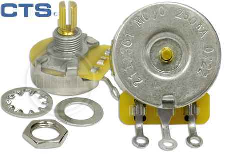 米国アンプ・ギターパーツで有名なMOJOTONEがCTS社に特別注文で制作依頼しているポットです。 *10% コントロール精度-(標準品20%) *真鍮シャフト(標準品はアルミもしくは樹脂シャフト) 早速、弊社のギターにも使用してみましたが、音のぬけが良くなった気がします。一度お試しください。