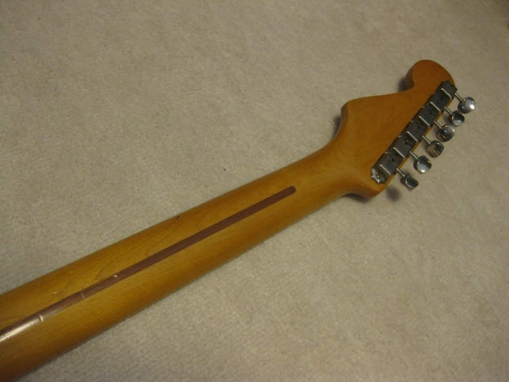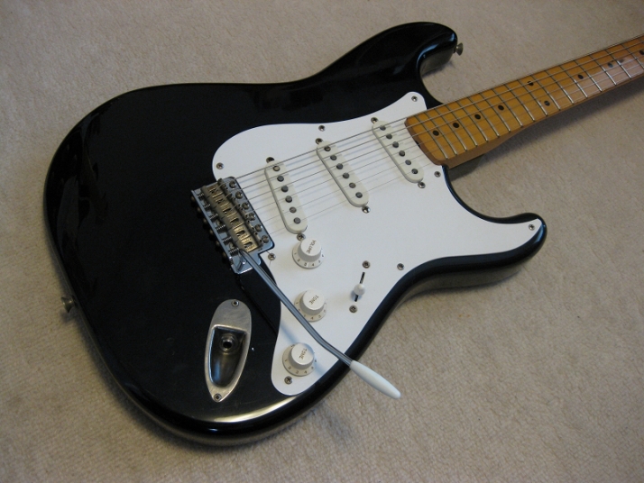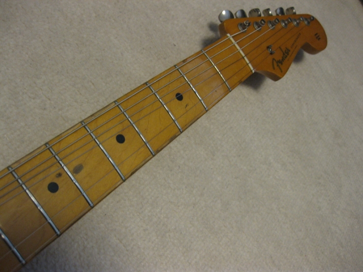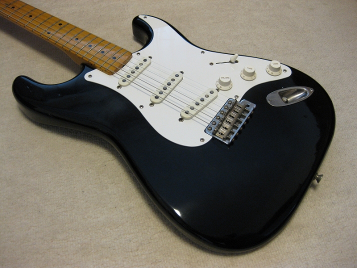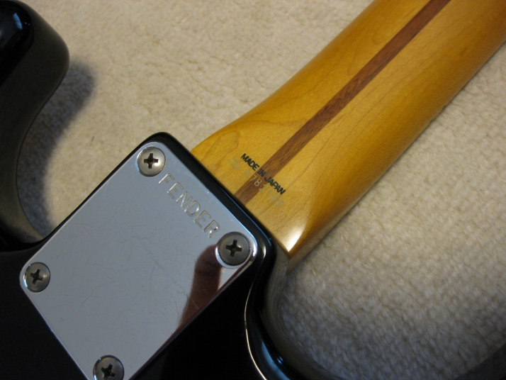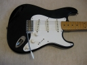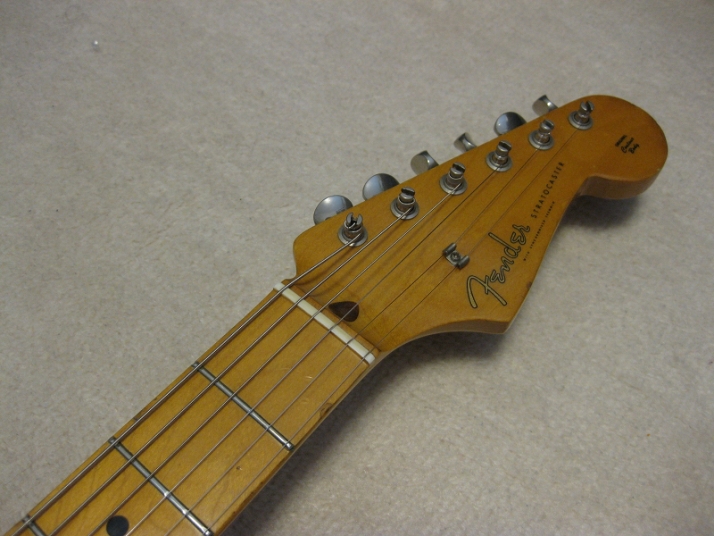 | Fender Japan MIJ E Serial Fujigen made Stratocaster 57 Well, proper condition E serial 57 model. Maybe made in 1987 from the serial. It should be all original specification. The PU is Fender Japan original. The neck is 1P maple and straight with standard C grip. The frets are a little bit worn. It is still O.K. for playing. The nut width is 42.2 mm. The electric circuit are fine. I'm not sure about the body material. Fender Japan mixed body materials basswood or alder 3P. It is 3.6 Kg weight. There are scratches by pick around the pick guard. You can see it on the photo. Maybe, if you polish by compound, then it will be fnbe again. But this is vintage guitar. It is up to you... I have changed the inertia block to original to our steel made block. The original block is zinc die-cast made. Our steel block is completely different. It made much heavy tone and long sustain. You could feel it. This block also could accept the our special designed mufti-function Tremolo arm. I just put it for testing tone. We could deliver the original zinc die-cast block. I have also changed the output jack to switch craft with Belden wires for out put. The neck plate has the Fender press marked on. This plate is used only for before 90 made? Well, Good guitar ! Find out the good JV guitar! . |