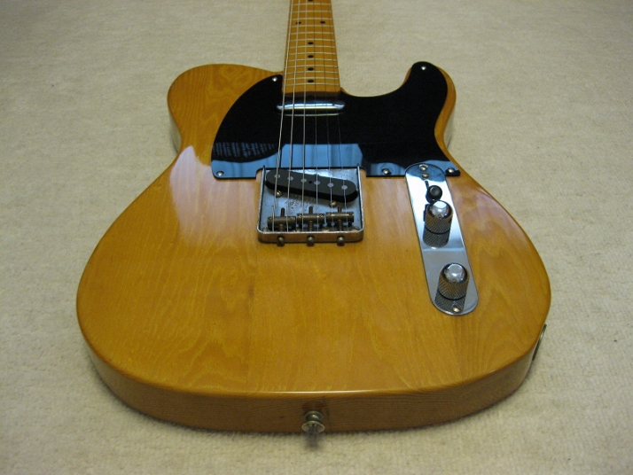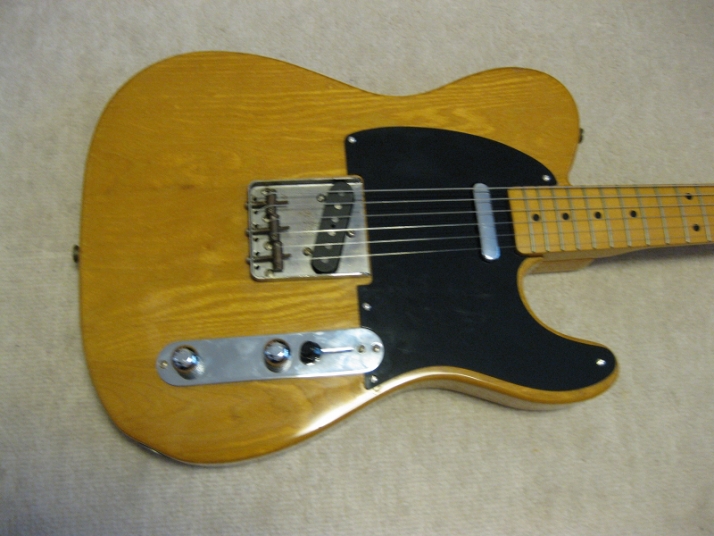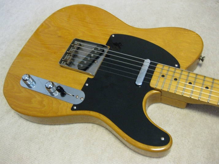 | Fender Japan MIJ A Serial Fujigen made Telecaster 52 When I get this guitar, the pickguard was took off. Well, I put the new pickguard but the original holes are bit out of position. So, I repaired it. Also output jack has many noise. So, I put the new Switch craft jack. This is I did for this guitar. This body should be Ash from the USA pick up mounted.. Well, the sound is pretty good. The weight is 4.31Kg. The 1P neck is straight and truss rod is adjustable. 42.33 mm nut width. Well, the grip is standard C type. The finger board surface are bit paint off and color changed. It made this guitar looks pretty old! Well, Good guitar ! Find out the good JV guitar! |