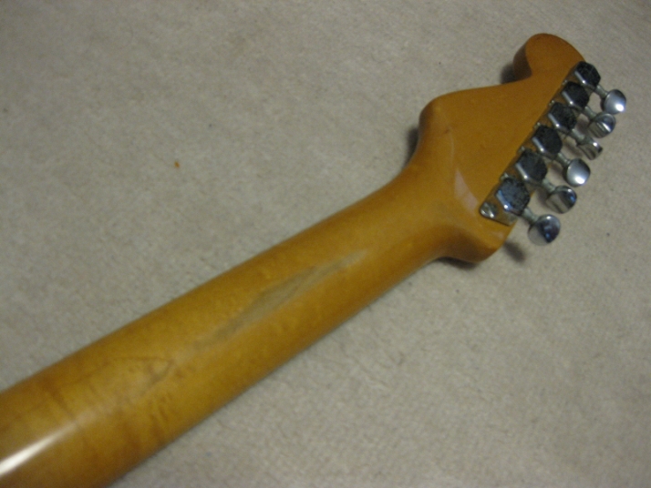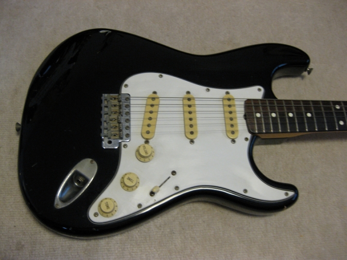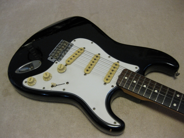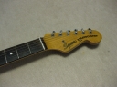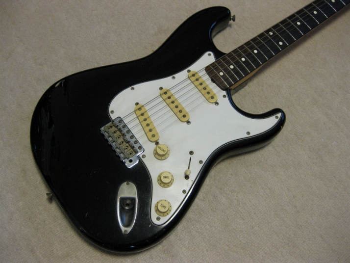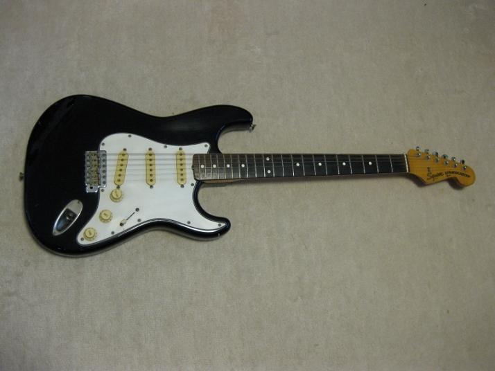 | Fender Japan Squire MIJ JV Serial Fujigen made Stratocaster 57 This is JV serial Squire Stratocaster. Everybody look for Fender Japan JV now. It is getting more expensive and expensive even these are not original condition. Fujigen started the JV serial in 1983 as earlier production lot. Most of JV serials were made for Greco SE model. They just change the Logo mark and electric wiring, I've heard. It means that how later Greco Stratocaster were good guitar. Anyway, this is SST-45 model. The body is Ash or Alder with 3P or 4P body, Fender Japan said. It is a reason the reduce the pricing. The weight is 3.63Kg. The neck is Maple 1P with Rose. The neck shape is standard C with 42.8mm nut width. The frets are worn at low fret. But it is not necessary to re-fret now. It should be 60-65% condition. The body condition is proper. There are many dents and scratches as old guitar. This is way I rated this guitar as fair. The different between SST-50 and 45 are pick up and tuner. 45 has SQ-4 PU and not vintage type tuner. I'm not sure the different between pick ups. I could feel that the SQ-4 is much clear tone compare with 50. The bridge are bit rusted, but functionally no problem. We will deliver this guitar with used Gig bag. If you are looking for early time Fender Japan, this is it. Well, Good guitar ! Find out the good JV guitar! |