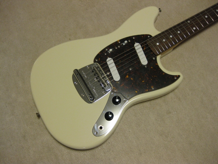 | Fender Japan MG65-86 CIJ R Serial Mustang Good condition Mustang model. The body hasn't got serious dents and scratches. This is not brand new, but almost like same condition you could see as NEW at guitar shop. The body is Poplar maybe 3P. This is sort of limited model by Fender Japan. It is very rare to see this model on the market now. It's weight is 3.26Kg. The neck is straight and frets are fine. The nut width is 40.55 mm, typical Mustang Slim neck. Of course, the electric circuits are fine. Well, the sound is pretty good. We will delivery this guitar with used Gigbag (not Fender) with original Tremolo arm. Well, Good guitar ! Find out the good JV guitar! |