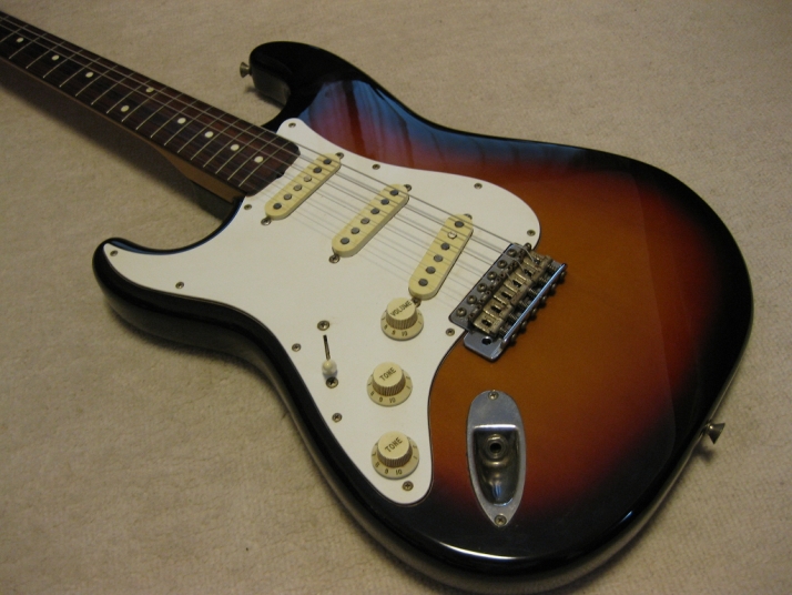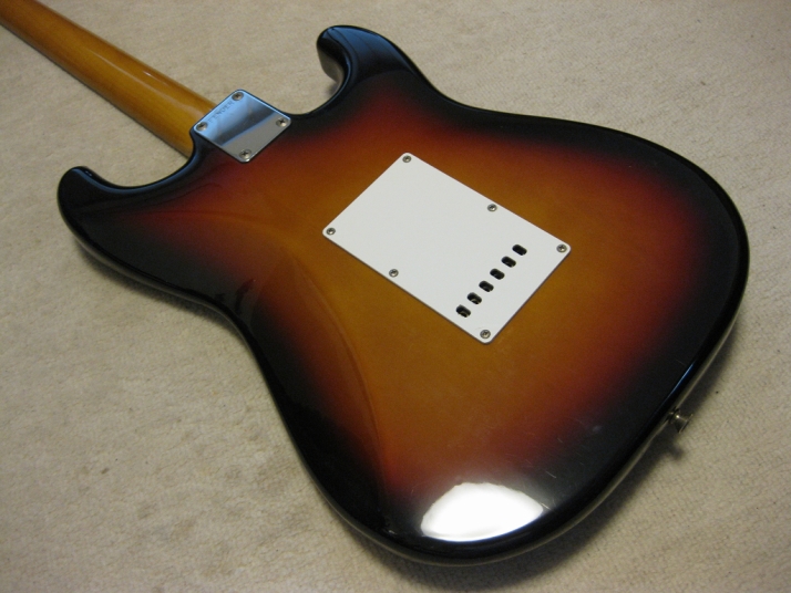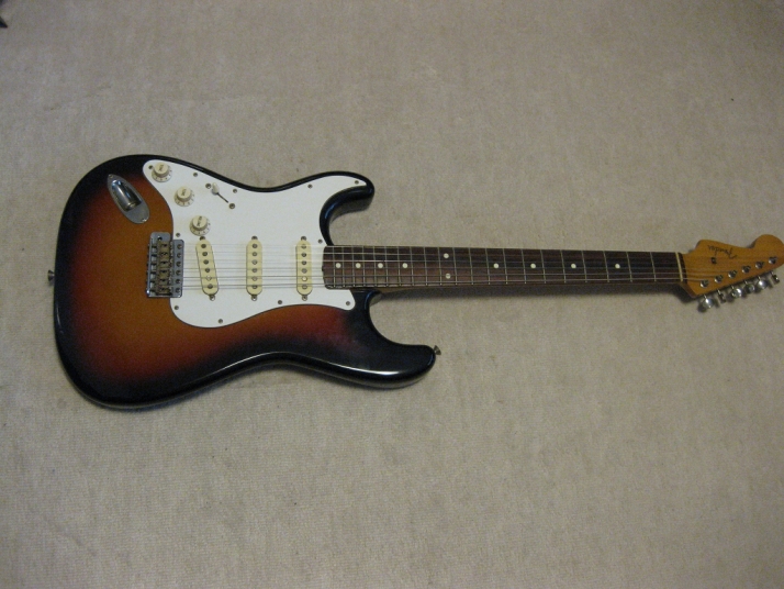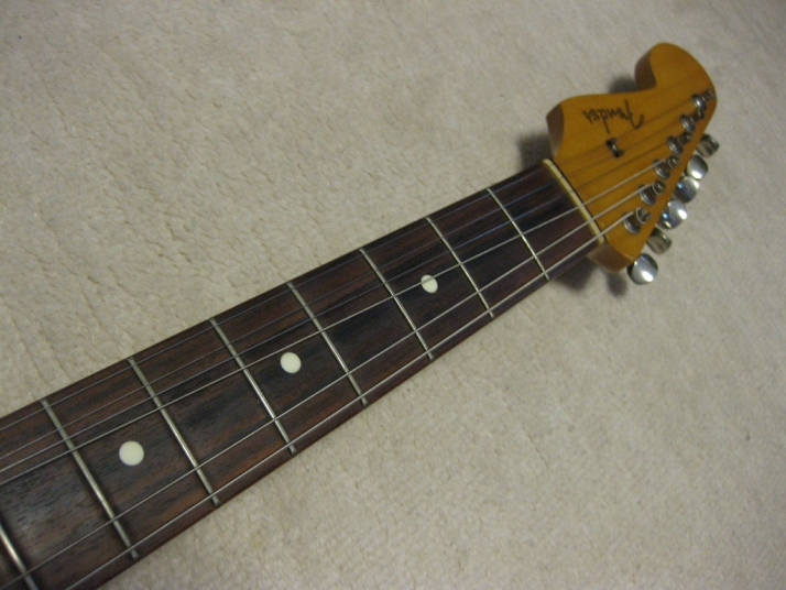 | Fender Japan ST62 Lefty Sunburst MIJ H serial This is a good condition of I serial. ST62 Lefty model. Of course, Fujigen made. The body should be the basswood (I don't think this is Ash) in 3P. The neck is 1P with rose. The weight is 3.61Kg. The neck is O.K., the frets are proper condition. The nut width is 42.35mm The outlook is very good condition. Almost no scratches and dents. The electric circuits are probably original, I felt when I saw inside. PU is Fender Japan original (should be Gotoh made). The bridge is rusted as vintage look, but functionally fine. The Lefty bar is included. The guitar will be delivered with gigbag (Not Fender Japan original) If you are looking for good JV Fender Japan, this is it. Well, Good guitar ! Find out the good JV guitar! |