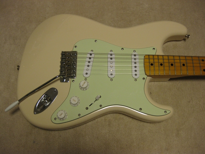 | Fender Japan MIJ N Serial Fujigen made Stratocaster 62 This guitar was used for our monitoring purpose. I have changed the most of parts for testing Gotoh made Pick ups which we are currently representing for export business. The body and neck are MIJ N serial. But the all parts are basically changed. 1) Change to CTS potentiomenetrs (Brass Shaft) 2) Change to Oak Grigsby 5 Ways S.W. 3) Belden Silver coated Copper wire 4) Switchcraft Output jack 5) New Mint Color Pick Guard 6) New Gotoh ST-Classic Alpha x 3 7) Gotoh Tremolo Units Assy This body should be Ash. Well, the sound is pretty good, better than original condition. Well, If you asked the guitar shops to modify like this, it should be very high p The weight is 3.59Kg. The 1P neck is straight and truss rod is adjustable. 43 mm nut width. Well, the grip is standard C type. Only neck behind was finished like mat paint now. Well, Good guitar ! Find out the good Gotoh Classic PU sound! |