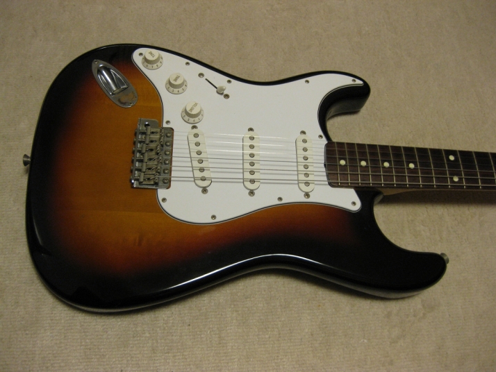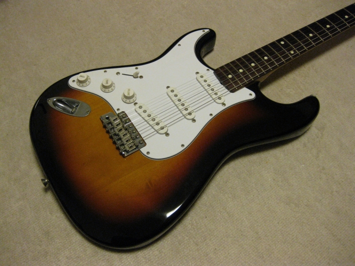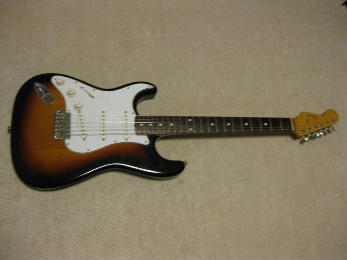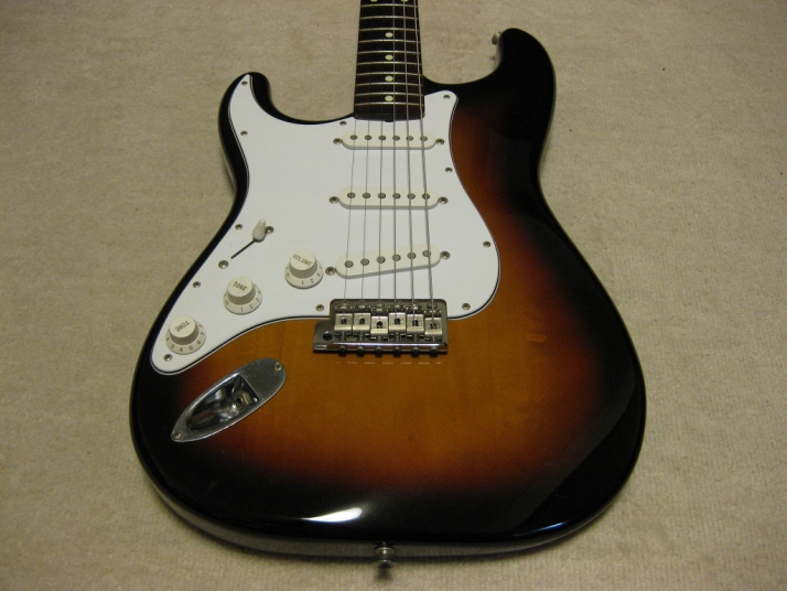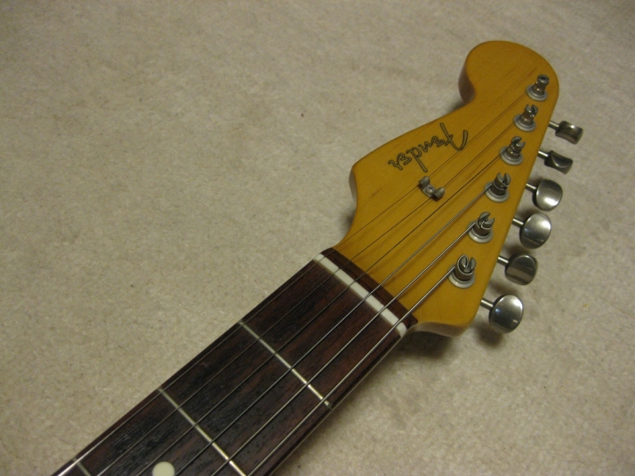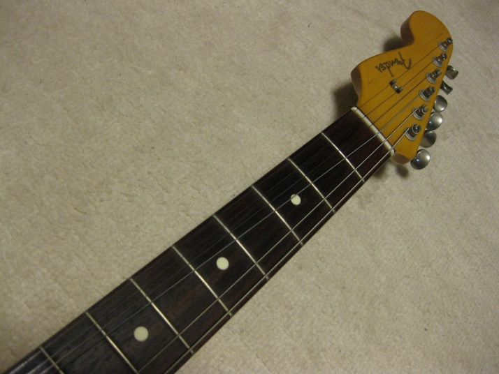| Fender Japan ST62-65 Lefty Sunburst CIJ O serial This is a good condition of CIJ O serial ST62 Lefty model. It was made between 1997-2000, probably Dyna Gakki Made Fender Japan. The body should be the basswood (I don't think this is Ash) in 3P. The neck is 1P with rose. The weight is 3.55Kg. The neck is O.K., the frets are proper condition. The nut width is 42.3mm The outlook is very good condition. Almost no scratches and dents. The electric circuits are original, I felt when I saw inside. PU is Fender Japan original (should be Gotoh made). The bridge and tuner are bit rusted. New Fender Japan Lefty bar is included. The guitar will be delivered with used gigbag (Fender Japan original) If you are looking for good Fender Japan Lefty, this is it. Well, Good guitar ! Find out the good JV guitar! |