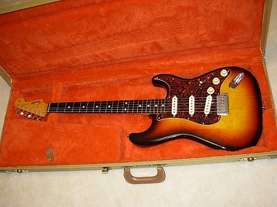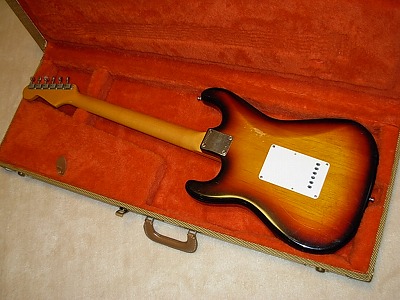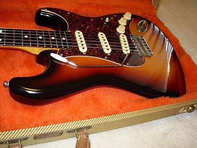 | Fender Japan 1982 made MIJ JV Serial Stratocaster Good JV serial ST62. I could specfy the production year from the seral and its head stock logo mark. I think all original except the pick gurad (I doubt this pick guard is original). Good body condition too. Of course, we could see small scratches (like angle hair) and dents. However, I think it is still great condition as 26 years old guitar. I owned several JV serials. And sometimes, I sold by clients requests. I don't want to sell these for re-sell. Wish to sell these JV for musician, I mean active players. The neck, frets and electric circuits are proper level (frets have several dents, but still not need to re-fretting yet). It is not necessary to change now. The Fender original tweed case will be provided with this guitar, If I would sell. Well, Good guiter ! I love it. |