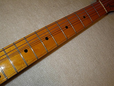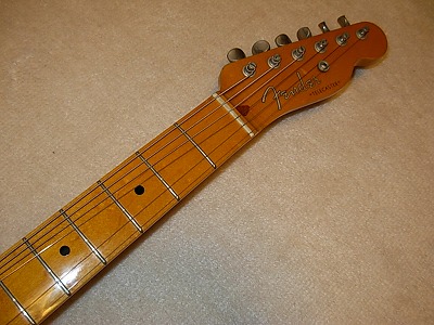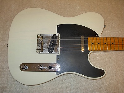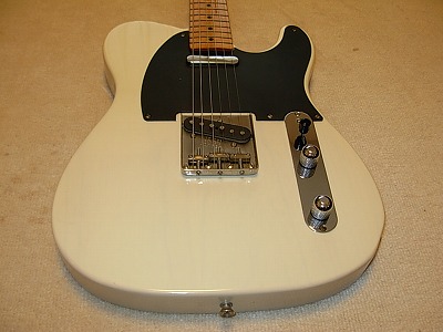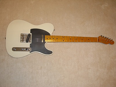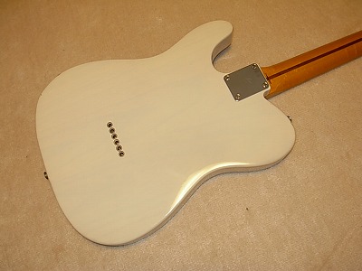 | Fender Japan Telecaster 52 CIJ White Fender Japan tele made by probably Tokai. I'm not sure about the originality of this guitar. I think the bridge has been changed. Beside that, this should be original condition. The neck shape is oval (I feel a bt like soft-V type). The neck is straight, the frets are bid worn, but it is still o.k. for coming several years. The Fender Japan catalog said that it is white Ash body. Maybe so. There are no so many dents and scratches. Around the output jack, we can see the scratches. It is not really old, it should be around 2000 made tele. You could change the PUs when you feel Fender Japan PU is not really fine. Please try Fender Japan ! |