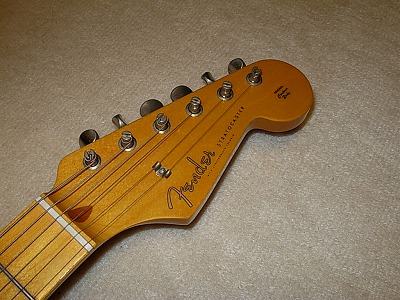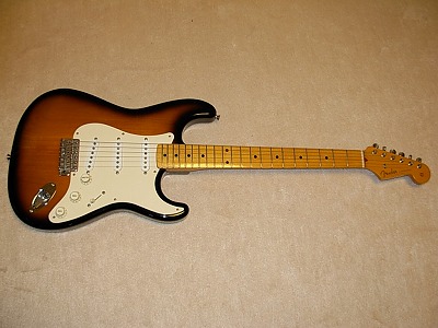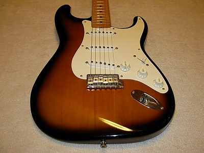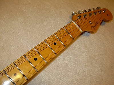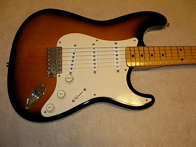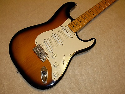 | Fender Japan Stratocaster 57 This is good condition CIJ O serial. The neck, frets and electric circuits are all fine. It's proper condition. Not many dents and scratches as shown on photo. This guitar is completely checked and you could pay it when you get it without any stress. The neck grop is C, not V shape. I feel it is very standard neck shape. Well, good sound and condition anyway. We are going to ship this guitar with used soft carrying case. If you would like to have a hard case, please ask us. We could only offer the brand new case. Please try Fender Japan ! |