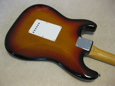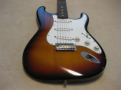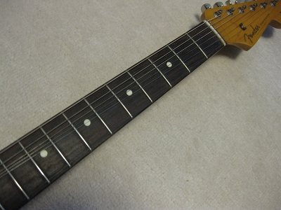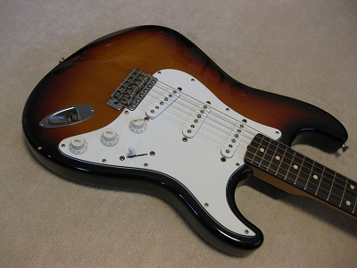 | Fender Japan MIJ N Serial Stratocaster 62 This is very good condition N serial 62 model The body is probably basswood. The weight is 3.39. It is pretty light body. The body condition is good. Only small dent (like 2-3mm dia) is around body bottom. The neck is fine with standard C grip, the frets are not really worn, still fine. No Modification, all original condition. The metal parts are bit rusted as 15 years old guitar. But, these are functionally fine. Well, Good guitar ! If you like to purchase good time FJ strat, this is one! |