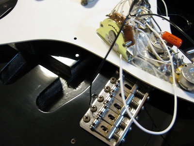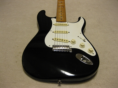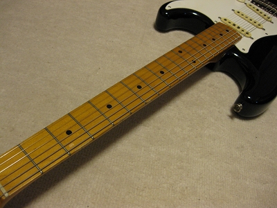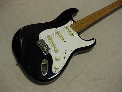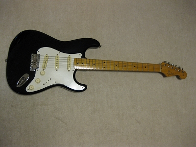 | Fender Japan MIJ N Serial Stratocaster 57 Model This N serial 57 Strat is made in 1993 by Fujigen. When I got this guitar, electric circuit was damaged. Therefore, I have replaced brand new CTS potentiometer, Switchcraft output jack and Oak Grigsby 5 way selector switch with Belden silver coated wire and WBT silver content solder. These solution made this guitar tone much clear. It is pretty good tone. Well, fair condition guitar. There are not really many dents and scratches on the body. It is about 3.4Kg, pretty light weight. I'm not sure about the body material. It should be bass wood or alder. The solid black color could not tell me the body material in use. The neck is straight Frets has a bit worn. if you feel to level, please do it. For me, I could still use it with current condition). Of course, this is 17 years old guitar. Please do not expect the brand new guitar. The truss rod is workable. The shape of neck grip is standard C type. The used Gigbag will be delivered with this guitar. Well, try to Japanese Vintage guitar! |