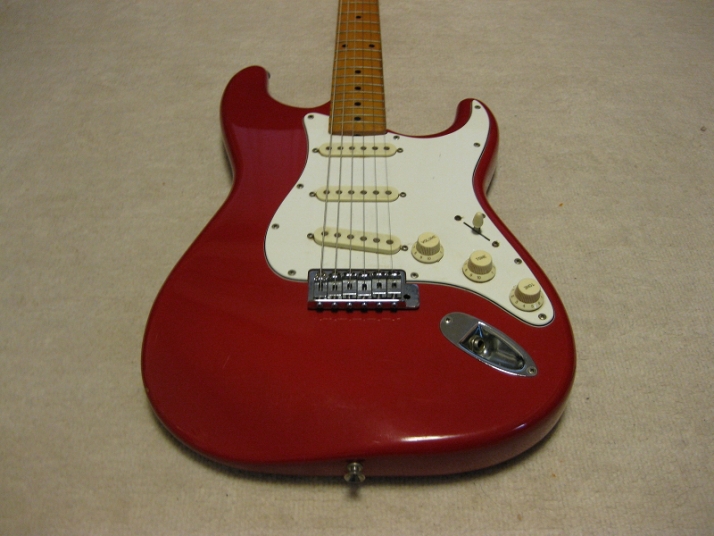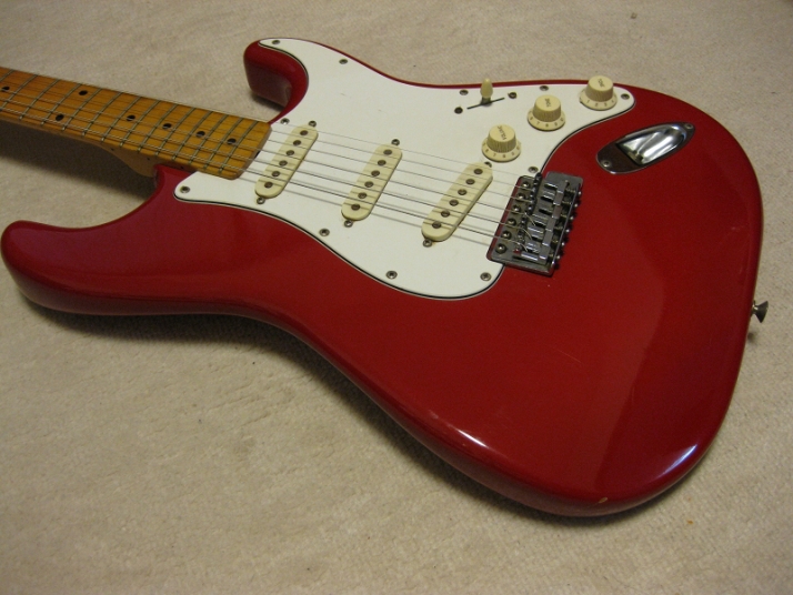 | Tokai Stratocaster TST 1983 made This is very good condition Tokai 83 made Stratocaster model. This guitar has the serial from L, therefore, it should be earlier production of TST series. The neck is straight and no twisting. The truss rod is adjustable. The frets are proper condition. Only little bid worn. The neck shape is like C as Stratocaster. The Nut width is 41.85mm The Sen 3P body with 3.52Kg. I think it is light standard weight as older Japanese made Starto. Not really bad condition body. Only this guitar has the sticker behind. I didn't peel off, I just worry that the sunburn under stickers. Well, if you don't like it, please peel off! The metal parts are a little bit rusted. These look good. The sound is typical Strato sound, We are going to ship this bass with used Gig Bag. Tremolo arm is missing. We will ship the replacement Tremolo arm. Please try JV Precision Bass! |