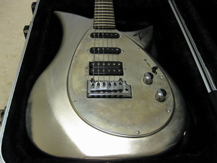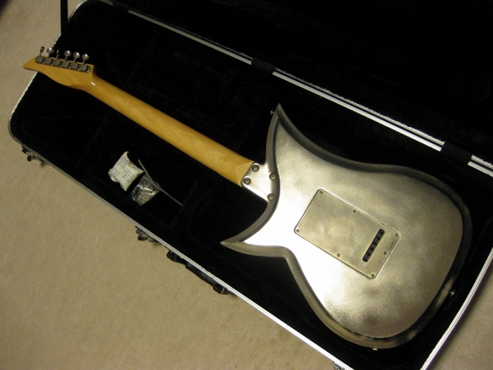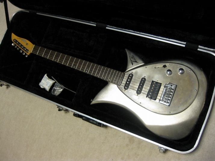 | TOKAI TALBO Aluminum Body Guitar Good condition late 80's made Talbo Guitar. Probably, it is A-130. Of course, it is the aluminum body. I have seen several Talbo guitars, this is good condition. The neck is straight with Rose finger board. The frets are fine, not really worn. The truss rod is adjustable from the side of neck end. The body condition is good. Metal pick guard is a little bit rusted. There are no serious dents and scratches. It is 4.03Kg We have checked all with re-assembling. These are original condition at a result of inspection. The electric circuits are fine too. Good Aluminum guitar! The original Tremolo arm is missing. We would deliver the arm which will be in use with this guitar. But it is not Tokai original. Well, please try the Tokai Talbo !!! |