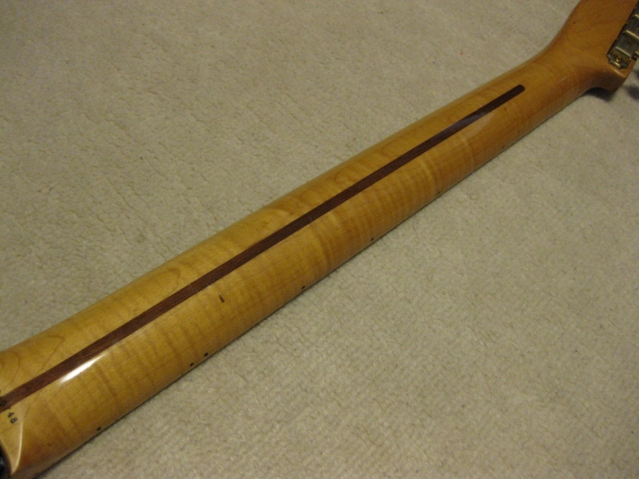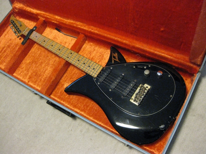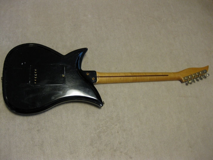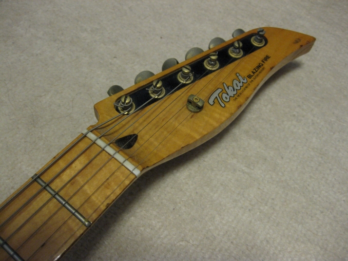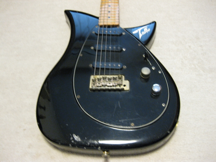 | Tokai Talbo 1983 made original 2 screw type This Talbo is early 80's made model from the serial. Early days Talbo is completely different from the current model. Well, same aluminum body, however, early model was made 2 cast aluminum body. 2 front and rear bodies were welded. After welding, the Polyurethanes form were injected from the top hole beside middle PU cavity. The current Talbo is casting aluminum body, therefore, it is one piece body. As explained, at the result of body constructions, the Tremolo cavities are different too. The body shapes are slightly different. The earlier model is a bit round shape, the current model is more shape (edged). The earlier Talbo has the 2 bolted on type neck. The neck end was processed in a trapezoidal shape. It makes the neck angle correctly.This neck joint construction made a different tone from the current Talbo. Truss Rod and finger board construction are different too. The current model have the side adjusting type and finger board is slab board type. This guitar is fair condition. The body has several paint dents with 3.68Kg weight. The neck has beautiful tiger flamed, 1P maple. The nut width is 42.4, like C grip. The parts are gold metal. The logo mark is gold type. It is pretty good. Functionally this guitar is good condition. 1 knob is replaced with chrome color one (tokai) The hard case (not Tokai) will be delivered with this guitar. |