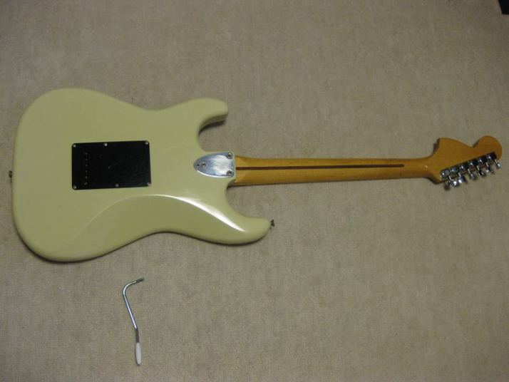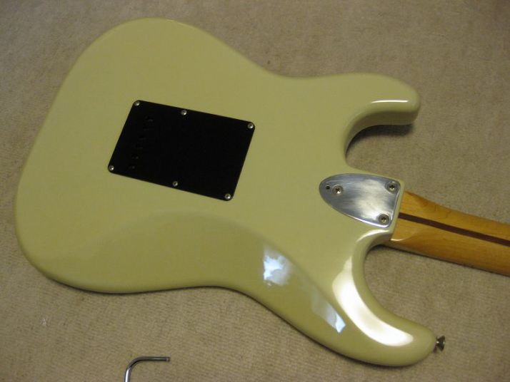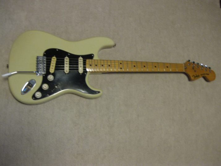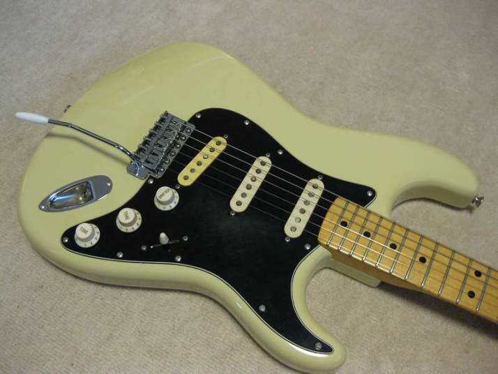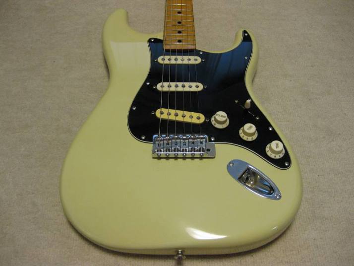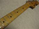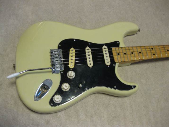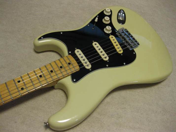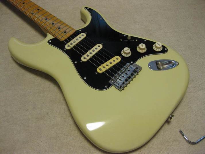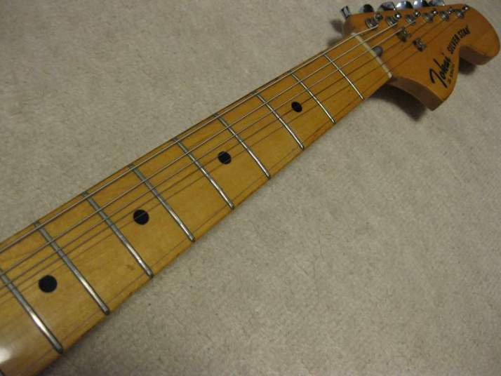| Tokai Stratocaster SS-36 with Fender Japan JV serial time Pick Ups This should be 1979 made Strato model from the serial number. I got this guitar as original condition. But Seller put the Ferlite pick ups instead of Alnico. I took off those unknown pick ups and replaced with my stock pus on. I have changed only circuit. The pick guard is original Tokai. The replacement pick up taken from Fender Japan JV serial Strat. The neck PU is not Fender Japan, I could not remember exactly but this is Alnico type. Middle and Bridge is brown bobbin PU taken from ST62-65 JV serial Strato. Well, the collector would like to purchase these pick ups with special price, anyway. The sound is very good, I could recommend you to play. (I would not say like this often). The body should be Sen 3-4P. There are very few dents and scratches. It is 3.49Kg. The neck is maple 1P with 40.6mm nut width. Some screws are changed to stainless. The original got too rust (could not move). Now, this guitar became pretty good condition. The guitar will be delivered with used gigbag. The Tremolo arm is stainless (Music-Trade original, we are selling it only for domestic market now). Please try JV guitar! |