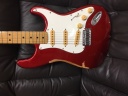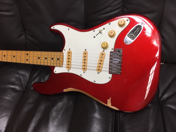 | Tokai 1983 made Stratcaster Model This is proper good condition Tokai 83 made Strat model. The body outlook is good, but as you could see there is several scratches. Probably, the previous user made it like vintage looks The body should be Sen (Japanese Ash) with 3.48 Kg. I'm not sure how many piece of body. Maybe 3P. The neck is maple 1P, straight, not twisted. The frets are proper condition. The neck grip is like standard C. The nut width is 40.5 mm. All electric is original condition. The pick up are gray bobbin but no stamps are on. The sound is good. This Tokai is probably 83 made. Well, it is not top grade model, but it is getting tough to find out the good condition like this. The guitar will be delivered with used gigbag. Please try JV guitar! |