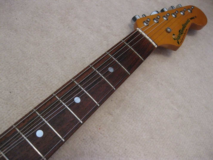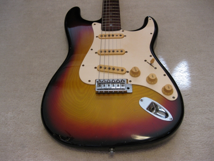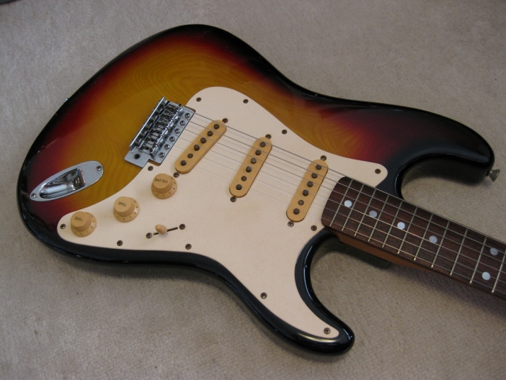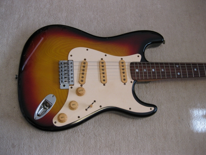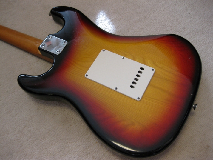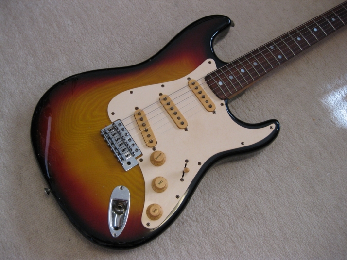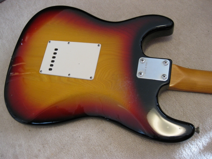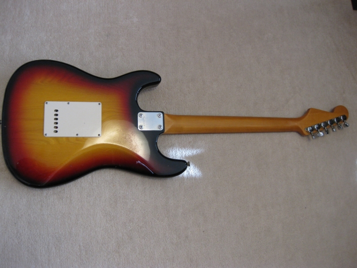 | SR-400S 1982+ made Yamaha stratocaster Yellow Sunburst This is SR-400S. Well, this model was a cheapest range of Yamaha Strato. But, it is very good quality, if we compare this guitar with the current made guitars (which maybe we imported from China or Korea --- I'm not saying these are bad quality) Yamaha stratocaster always made me surprised. Well, the body of this guitar is probably SEN 3P. The weight is 3.3 Kg. The neck is 1P with rose wood finger board, 41.3 mm Nut, C standard grip. Good wood were used. Of course, the neck is straight. The condition is good as 30 years guitar. There are not serious damage. The neck wood has the flamed pattern too. I think all the parts are original. Good tone, Guitar with proper price as vintage guitar. This guitar will be shipped with Gig case (not Yamaha original). Please enjoy Yamaha Vintage SR |