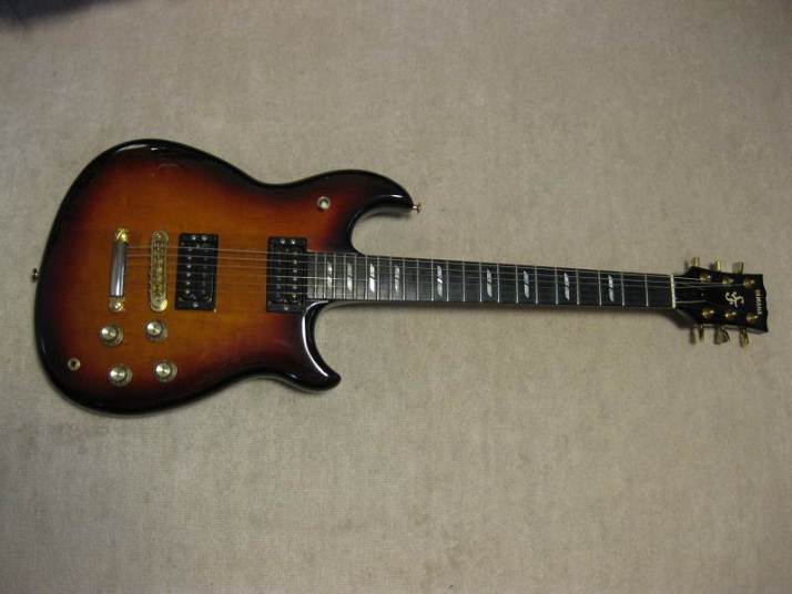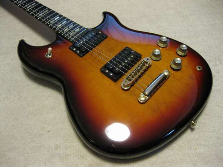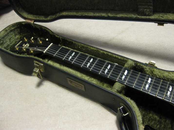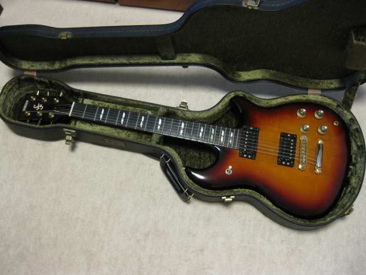 | YAMAHA SF-7000 Original Designed Through Neck Guitar You got an impression that Yamaha was only making the SG for Santana. Maybe SR strat type and LP model. Actually, Yamaha made many kinds of original guitars besides these guitars. Well, like SF series, this series was their original design. This series sales was not really successful, like SGT did. However, I have heard that many Japanese studio guitar players used this series for their studio works. The sound of SF is pretty cool. The body was made by Maho and Maple (4Kg weight) The neck is Maho and Maple too with though neck constructions (42.9 mm nut width). The grip like C but slightly thin.The finger board is Ebony made. 3 Way selector and 2V2T with push switch to select the PU Humbucking/single. From the serial number, we could estimate this guitar was made in 1981. As 30 years old guitar, this is very good condition, we could say Mint condition. The metal parts were a bit rusted but these are still shining. I have changed only knobs to new Yamaha staff from my stock (these are original Yamaha made). The original case are including the price. The condition of this case is fine as 30 years. You could still use it. Well, it is very rare now to see good conditioned vintage Yamaha. Try to Play JV Yamaha! |