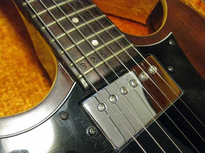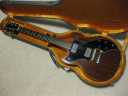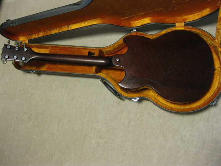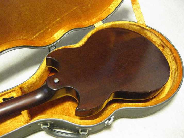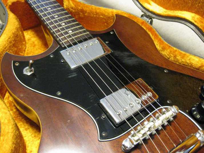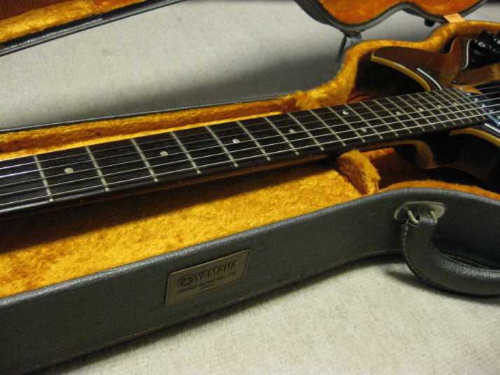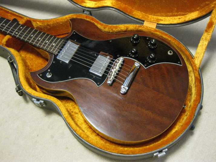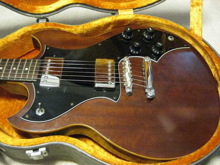 | YAMAHA SG-70 1974 Made Yamaha started SG series (same shape with current SG) in 1974. The line up of this SG series are SG-175, SG-90, SG-70, SG-50 and SG-35. Well, this is middle class of this SG series. This SG gave us much impact when we saw 1st time in Yamaha shop. I was 13 years old that time. It was sort of dream guitar. The body construction is different from SG series in 1976. As you may know, Yamaha changed the specification of SG after they got many suggestion from Santana. The body is Nato wood. The neck is African Maho with Rose finger board. I'm not sure how many piece of wood (It is hard to see). The weigh is 3.45Kg. It is light weight compare with Les Paul. The nut width is 42.6mm The condition of this guitar is pretty good as 37 years old guitar. There are no serious dents and scratches except the pick guard. You could see the scratching of pick. The neck is straight and truss rod is still O.K. Well, the neck wood is dried and the wood around the edge of frets are a bit shrinking. This is not big problem for playing, anyway. The electric parts are original except the Pot below. The PU date is 1974.8.23 Yamaha Alnico magnet PU. I have changed : 1) Neck PU Pot (brand New Gotoh 500K B) 2) PU height adjusting screws (Previous owner lost 1 pc.) I put black plated SUS screws. That's all for changing parts. I have adjusted the string height only (pretty good) The original Hard Case will be sent with this guitar. This case is a bit damaged but O.K for using. |