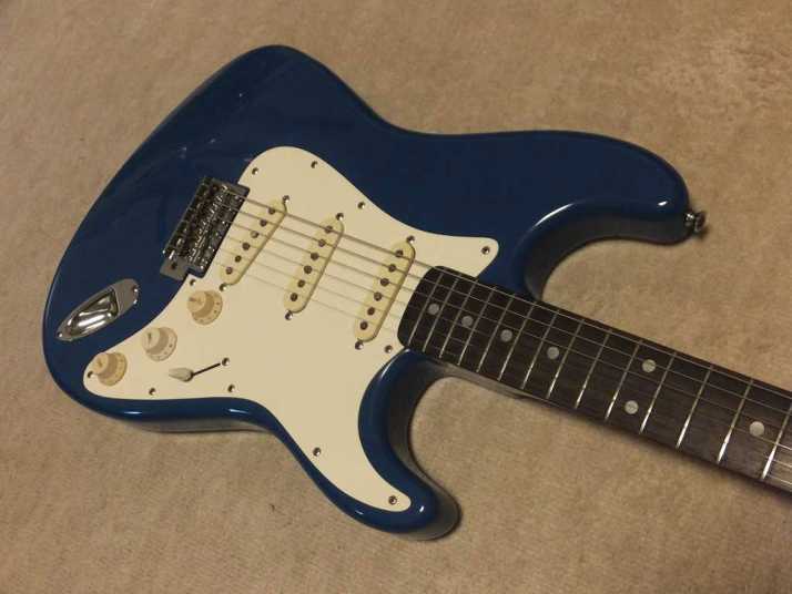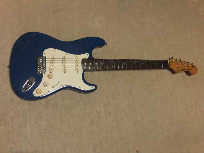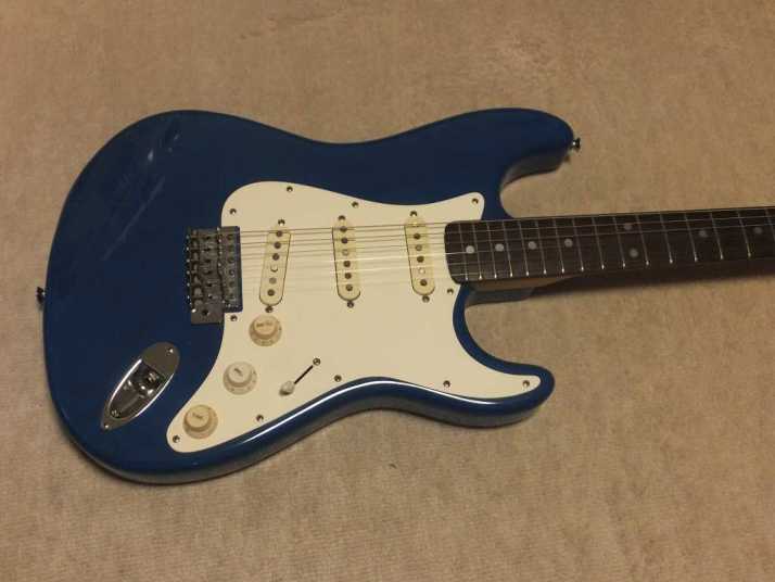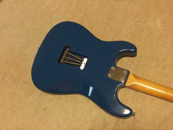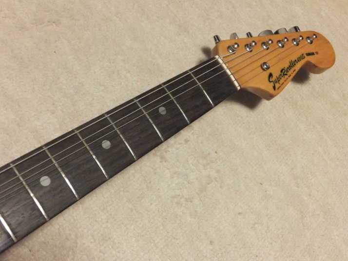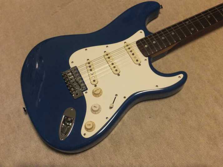 | SR-400S 1982+ made Yamaha stratocaster Blue This is SR-400S. Well, this model was a cheapest range of Yamaha Strat in 80's But, it is very good quality, if we compare this guitar with the current made guitars (which maybe we imported from China or Korea --- I'm not saying these are bad quality) Most different points are good seasoning (before processing the body works that time) and natural seasoning (almost 30 years old guitar, anyway). The weight is 3.56 Kg. The neck is 1P (Only head are 2P, Yamaha catalog said just 1P, anyway) with rose wood finger board, 40.7 mm Nut, C standard grip. Of course, the neck is straight. The condition is good as 30 years guitar. There are not serious damage on the body. I could see small dens on the neck behind. But these are not serious. This blue color is very rare color. I saw same color maybe 2 units for past 6 years. Good tone Guitar with proper price as vintage guitar. This guitar will be shipped with Gig case (not Yamaha original). Please enjoy Yamaha Vintage SR |