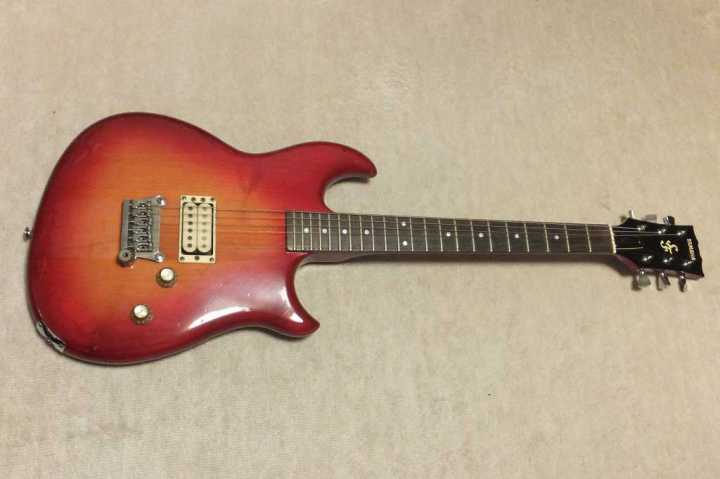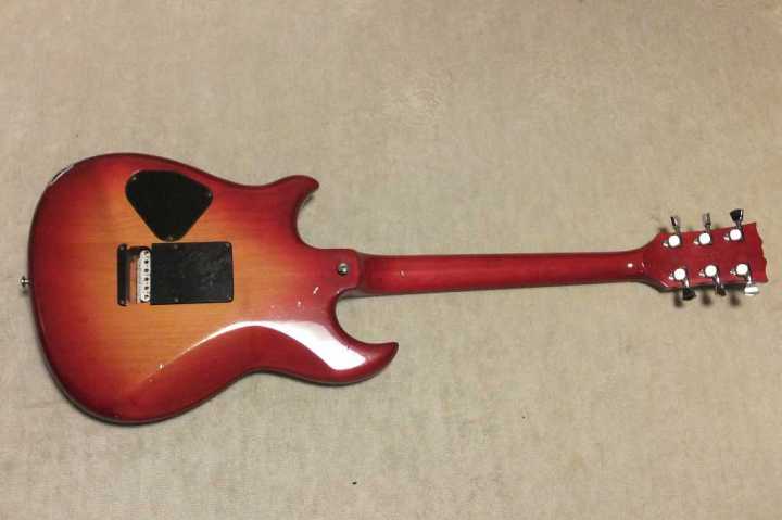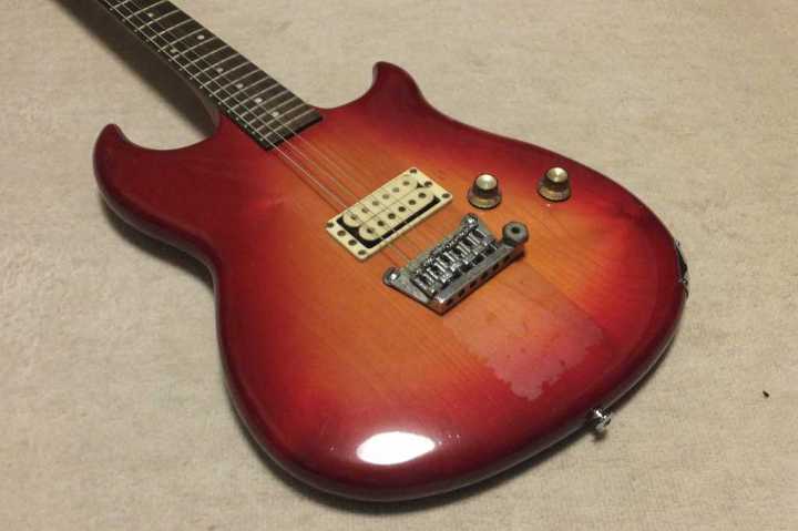 | YAMAHA SF-3000RS Yamaha made many unique guitars in 80's. SF series were made from the stratocaster and Les Paul mixed concept. This SF-3000 was added as hard Rock type guitar, I think. List price of SF-3000 was 60,000 Japanese Yen over 30 years ago. The scale is same with Start, has 22 frets. The Tremolo unit is 2 pole type. But previous owner lost the Tremolo arm. He made the bushing to connect this unit, you could use the strat arm now. According to Yamaha catalog, this guitar should have Tap switch on Volume pot. But it hasn't got now. Maybe, previous user took off. The body should be alder 2P with 3.3Kg. Pretty light weight. The neck seems to be Maple 1P. with 22F rose finger board. It is not fat neck. The nut is 43.6 mm It should be Gibson LP scale. The condition of this guitar is good except Non Original arm. The tone is quite good. You could play this guitar for real heavy metal sound. We are going to ship this guitar with used Gigbag (not Yamaha). Enjoy JV guitar! |