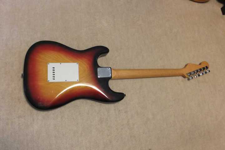 | SR-400S 1982+ made Yamaha stratocaster This is SR-400S. Well, this model was a cheapest range of Yamaha Strat in 80's But, it is very good quality, if we compare this guitar with the current made guitars (which maybe we imported from China or Korea --- I'm not saying these are bad quality) Most different points are good seasoning (before processing the body works that time) and natural seasoning (almost 30 years old guitar, anyway). The weight is 3.53 Kg. The neck is 1P (Only head are 2P, Yamaha catalog said just 1P, anyway) with rose wood finger board, 42 mm Nut, C standard grip. Of course, the neck is straight. The condition is good as 30 years guitar. There are not serious damage on the body. Good tone Guitar with proper price as vintage guitar. This guitar will be shipped with Gig case (not Yamaha original). Please enjoy Yamaha Vintage SR |