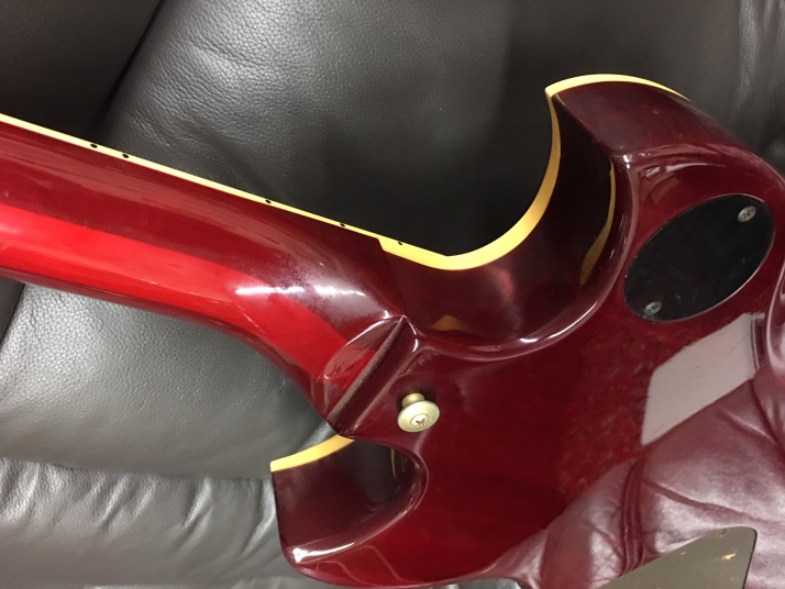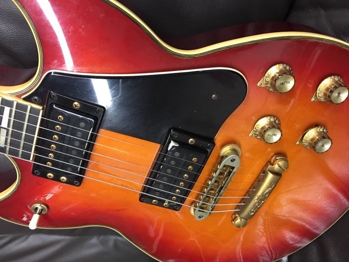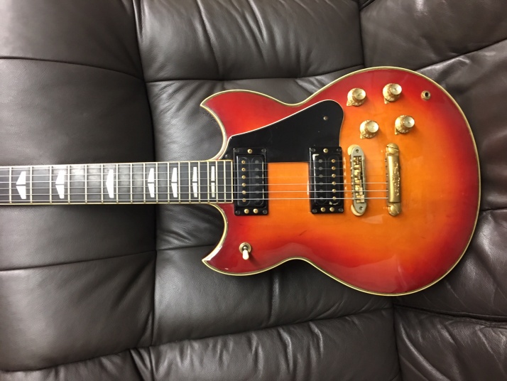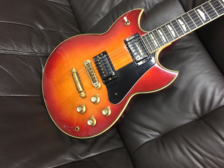 | YAMAHA SG-1000 1982 made Yamaha started SG series (same shape with current SG) in 1974. The line up of this SG series are SG-175, SG-90, SG-70, SG-50 and SG-35. After that, they started SG-2000 though neck type , a bit later, they added SG-1000 as set in neck type. I think SG-1000 was most popular model. No Idea how many Yamaha made. However, now, we could not see the good condition Yamaha SG-1000 even in Japan. Yes, you could see them sometimes on auction site. But very regretfully, most of them are very poor condition and need much works after purchase. This SG-1000 is pretty good condition.The outlook is generally fine. Most of Yamaha has paint problem. The clear top coat became cream, not transparent. This guitar is fine. I have checked all and just did a few mentenance works such as putting new switching knob and control knob (Yamaha original) The neck is straight, and truss rod is workable. The frets are bit worn but not necessary to refret now. Pretty good condition as 37 years old guitar! You could try it! |
