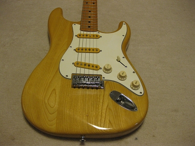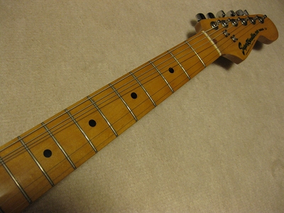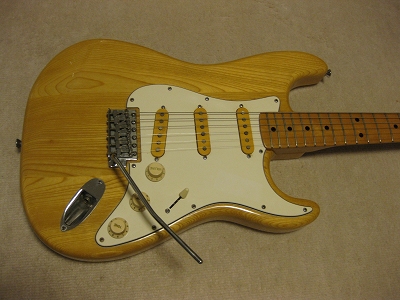 | YAMAHA Stratocaster SR-700 This is pretty good condition natural finished SR-700. Outlook is good as 30 years old guitar. Of course, there are small dents and scratches, but these are not really visible. The production year is probably late 70's. SR-700 is top model of Yamaha Stratocaster. SR-700 is Ash body in 3P. It is 3.78 Kg. The neck is straight, grip is standard C. The frets are not really worn. It is still O.K. for playing coming several years. 1 tuner cover was changed to other color Yamaha. It is not showing clearly on the picture. All electric components are fine. The selector switch is 5 way. I could see many SR-400,450 and 500. However, SR-700 is pretty rare to see. I have the sunburst one once. This is second. It is very clean tone. Pretty good sound! How the people evaluate the value of guitar. I think mostly just brand name. Note : The Tremolo arm is missing. I would ship the Gotoh current arm 6.5 mm dia type. |